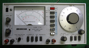 真空管アンプ製作がブームとなっていた1970年代に、リーダー電子から発売された歪み率計 LDM-170です。1mV〜300Vフルスケールの広帯域AC電圧計と、フルスケール0.3%の歪み率計として使える測定器です。S/N比の測定をdB表示で行うことも可能で、1kHzのハイパスフィルターも装備しています。購入したのは1976年で、当時の定価は\89,500だったと思います。当時ペアとなる低歪み低周波発振器も比較的安い価格で発売されていました。