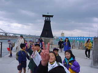 その後、福応神社、今津小学校の旧校舎にたちよってから今津の燈台前で、昼食をとりました。
