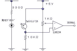 このフォトトランジスタは、回路構成が比較的シンプルで、かつ出力電流も大きい事から