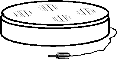 「太鼓スイッチ」の概略図です。点線の丸がスイッチのだいたいの位置です。