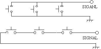 上の図 「並列つなぎ」 下の図 「直列つなぎ」