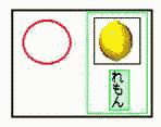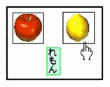 コンピュータの画面の左右に「絵カード」、中央に「文字カード」を表示し、絵と文字を合わせる事を試みた(図10.11)。