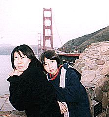 このあと友人の自動車でサンフランシスコ市内に向かう。ユニオンスクエア、ロンバートストリート等、サンフランシスコ市内の名所をつまみ食いする。その後、ゴールデンゲートブリッジを渡りサウサリート側の駐車場で一休み。この駐車場、売店も何もないが、観光客が多く、みんなゴールデンゲートブリッジをバックに写真を撮っていたりする。それに歩道に大きな布を広げて、土産物を売っている人達もいる。我々も橋をバックに記念撮影。写真を撮っていると突然大粒の雨が降り出した。土産物のTシャツを売っている露天商の人達もおおあわて。ばたばたとかたずけてみんなが車に戻ってしまえばここはただの駐車場に早変わり。