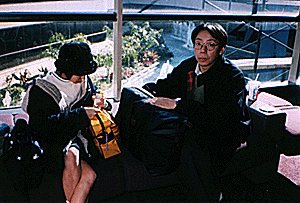 最後に残っていたドルと小銭までを使い果たし、飛行機の搭乗時刻を待つ。こんなときに限って飛行機の出発が送れたりする。結局、飛行機の出発時刻が1時間も遅れたが、何か飲み物を買う金も残っていなかったので、待合室でひたすら待つ。副隊長はおおいびきで眠っていた。