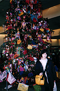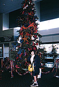 サンフランシスコ空港の国際線出発ロビー。七夕のようなツリーでした。 |