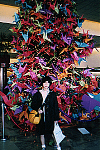 サンフランシスコ空港の国際線出発ロビー。千羽鶴のようなツリーでした。 |