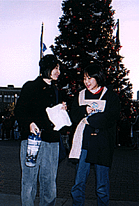 成田空港のクリスマスツリー。どこにでもあるツリーでした。 |