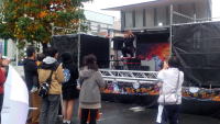 ◎ くきっ子頑張りました。最初のストリートフェスタ 10/20(日) ![]() ![]() ![]() ![]() ![]() ![]() ![]() ![]() 10月第3日曜日は長いこと「市民まつり」の日だった事、「市民まつり」は生涯学習ボランティアの手により 久喜市の市民力の象徴として開催されてきた事、そうした人たちの活動力・組織力が大幅に減少、昨年「市民 祭りの会」が解散した事、代って何をどうやるかの模索の中で、行政主導により「ストリートフェスティバル」として 開催される事、はすでに記してきました。私としてはどんなものかとすごく興味がありましたし、加えて従来3つ あった西口ステージが1つとなり、そこで久喜小の4年生の子どもたちが「パフォーマンス」をすることになりました。 それをしっかり見ることを第一として、第1回の「ストリートフェスティバル」を観させていただきました。 まず会場です。従来は20m道路、提燈祭り道路、2本使い、ステージは駅前西口・東口・公民館前と3つ設けら れていました。今回は提燈祭り1本、市役所通りから西口駅前広場まで、それもロータリーは空けてステージは 「りそな銀行」駐車場に置かれていました。にぎわいです。―上と下・左― 上は会場の起点となる市役所通り、 下は進んで新町交差点近くです。露店も出てまずまずの人でした。途中従来から人気であったミニ新幹線が走って いました。今回はJRのそれはなく、久喜工業高校のものだけ、― 上・左2 ―それでも子供たちの長い列ができて いました。昔珍しいチンドン屋にも会いました。―上・右2― しかしこれはプロではなく素人の方、1人だけの女性は 間違いなく私も知る市内の方、見事なパフオーマンスに感心しました。「仲町山車保存会」が人形山車を背景に お囃子を披露していました。―上・右― 地元の銀座商店会は今回の祭りの中心地です。当然協力したのだと 思いますが、祭りで顔なじみの若い男女が運営面で協力していました。祭りスタイルがかっこよかったです。 従来の市民まつりには見られなかった唯一の評価できる点でした。 りそな銀行駐車場のステージに到着しました。周囲では特設のリンクを作って久喜市がこれから推奨していく 3×3、スケートボードの練習、パフォーマンスをしていました。―下・左2― 結構上手に滑れるこどもたちが 多いのにびっくりしました。さてステージです。前後に例のサンボのダンスグループ、久喜高校のコーラス、久喜 工業高校のダンスグループの演技発表などがありました。 さて久喜小の子どもです。4年生の子ども達100名弱、久喜小校歌の演奏、楽器演奏と合掌各1という内容 でした。―下・右2枚― 運動会での鼓笛は5・6年生です。この子たちは初めての事、皆真剣に頑張っていました。 最後に子どもたちが大勢集まった市民の皆様に訴えます。『私たちは総合的学習の時間で提燈祭りについて 勉強しました。地域の方のお世話になり山車も引きました。その久喜の提燈山車が埼玉県の祭り人気で6位と 聞いてびっくりしました。絶対1位だと思います。私たちは1位となるよう頑張ります。皆で楽しい祭り、元気な久喜 を目指していきましょう。』思わず涙が出ました。発表するみんなの声もしっかりしていました。こういう1つ1つが イノベーション力となるのです。ご苦労様でした。 さてストリートフェスタ全体です。時間のない中でよくまとめたと行政担当の方々を評価します。人もそこそこに 出ていました。ただ市民・団体の出店とか協力とかが少なかったのは仕方のないところでしょう。お祭り関係者や 商店会の人たちの協力がありました。こうした部分を少しでも大きくした来年のストリートフェスタを望むものです。 |