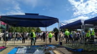 ◎ 久喜小地区コミ協主催「防災訓練」 6/23(日) 久喜小体育館![]() ![]() ![]() ![]() ![]() ![]() ![]() 久喜小地区コミュニテイ協議会主催の「防災訓練」が、23日午前久喜小体育館で 行われ参加しました。久喜小は本二町内会地内にあり、我が家からも直線距離100m にあります。当然歩いて久喜小に向かったのですが、校門前で集団で来るある町内会の 大軍団を見ました。―上・左― 「ああそうだ、訓練にはこれも含まれてるんだ」と思い ました。町内から避難場所に指定されている久喜小への集団避難訓練なのです。 会場の体育館には大勢の人が集まっていました。コミ協会長・久喜小校長等の挨拶で 開会式を終え―上・中― 訓練の始まりです。10を越える町内会が参加しています。 コーナーを3つ取り、それぞれのコーナーで各訓練を行うという形、―上・右― スムーズに流れたようであり、混乱していたようでもありという感じでした。 訓練内容は以下のものでした。防災グッズの展示(リヤカー、簡易テント・簡易トイレ等) 棒と毛布を使ったタンカの制作と実際の運送―下・右― 車いすの押し方―下・左― これは破壊された建築物(屋根瓦・ブロック塀のブロック等) 等が散乱する道路を想定 安全にクルマ椅子を運行する訓練で、段差に体操用マットをゆかに敷いてのものでした。 おなじみ「AED」の訓練(下・左2―) 私は20年ほども前に消防署でこの講習を 受けました。以来4~5回は講習を受けていますのでこれだけは自信がありまのす。 そして三角巾の実際 ―下・右2― です。これは中々難しいもので、この時間帯での 講習ではマスターするのは無理かなと思います。 あと消火器を使用する訓練もありました。これだけは体育館前の庭で行い、また「防災 倉庫」見学も予定されていましたが、これは足元が悪いため中止となりました。久喜小は 本二町内会地内と前記しました。いろいろお世話になっており、町内会自主防砂組織の 倉庫も裏庭に置いて頂いています。我が自主防災の倉庫は日常的に見ているのですが、 今日のは市のもの、どれだけ違うか、どれだけ整備されているか見たかっただけに残念 でした。 この日技術指導は車いすのみ市社協の方、アトはすべて消防署の職員、お世話に なりました。ありがとうございました。防災は自助―近助―共助―そして公助といいます。 まず自分で自分の身を守る、そして近所の助け合い、そのためにもこうした訓練は 多く行い、同時に全ての人の防災意識の向上を促していかねばならないと思いますか。 |