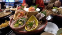 | ◎ 9年ぶりの気仙沼行―Ⅲ― 8/5・6・7・8・9 月~金 4日目 8/8(木) 5日目 9(金) ![]() ![]() ![]() ![]() ![]() ![]() ![]() ![]() ![]() ![]() ![]() ![]() 泊まったS氏の民宿は普通の中古の民家を購入、食堂・風呂・その他を民宿用に改造したものです。私は1Fに 寝たのですが、2Fからは綺麗な気仙沼大島の海を見ることができます。―上・左― S氏の車で気仙沼大島を一周 氏が釣りに使う小型船など見せてもらいました。そのまま港まで送ってもらい、一緒に前記した「サンマ船出港式」を 3時間近く見させていただきました。 気仙沼はかってサンマの町としてよく知られていました。義父もサンマ船に乗っており、新鮮なサンマを良く送って もらいました。そんなサンマも最近余り取れなくなりました。原因はいろいろ言われていますが、とにかくサンマその ものが少なくなっているのです。もう一度、昨日とれたばかりというよく脂ののった気仙沼のサンマを食べてみたいと いう疼くような思いがありますがダメでしょうね。それでもサンマ船は船団を組んで出航します。豊漁か否かは気仙沼 の景気そのものに直結します。だから最初の出船の際、盛大に出船式を祝い、豊漁と町の繁栄を祈るのです。 岸壁には約10隻のサンマ船が大漁旗を連立させ、サンマを呼ぶという白・青といった魚影燈を輝かせていました。 そして港には6~7の太鼓のグループ、関係者、見物客など4~500人もの人でにぎわっていました。―上・左2― 中央にステージカ―が置かれセレモニーが行われます。壇上には船長さんが乗り、花束贈呈、無事を祝っての 「清め」が行われ ―上・右2― 市長さんが挨拶しました。―上・右― ステージカ―前のイス、前列が出航する 船長さん、後列が市長・議長・県議に漁業組合長、どこでも同じようです。 セレモニーが終わり、順次出航していきます。太鼓をたたくグループは、久喜の提燈祭りの保存会のように7つ~ 8つありました。太鼓(ボンボン太鼓)、笛、どら(鐘)で構成されています。どらをたたくリーターの古老は2・5時間位の 間中踊りっきりでした。―中・左2― こういう人が若手を育成していくのですね。船は大漁旗をひらめかせ、魚影燈を きらめかせ出航していきます。皆太鼓をたたき、小旗を打ち振り、行ってらっしゃいと見送っています。―中・4枚― 鮮やかな魚影燈ははるかかなたでも見えます。それが見えなくなるまで皆で見送っていました。本当に良い 風景でした。会場でそろいのハッピを着て、セレモニーの司会から、会場設営、来賓案内まで全てに大わらわの 30~60歳位、10人強の女性のグループがいました。気になったので「市役所観光課?、観光協会? それとも 漁協の方?」と聞いてみたところ、旅館の女将、水産加工業の社長夫人等で構成される「**会」と称するボラン テイアの人たちとのことでした。「港まつり」や地域のこうした行事のお手伝いをするそうです。土地柄なのですね、 感心しました。サンマ船はとりあえず北海道花﨑港に入り、そこを拠点として知床半や遠くカムチャッカ沖で漁を するそうです。大漁であることを祈念します。単に珍しく、綺麗であっただけでなく、魚港の町、気仙沼の多くの人の 思いのこもった出船式を見せてもらいました。思い出に残る良い時間でした。 午後からせがれが南三陸町まで連れて行ってくれました。かっては1時間強係ったのですが、今は三陸道が伸びて 30分ほどで行けるのです。まず南三陸町復興のシンボル「さんさん商店街」、前に来たときは掘っ立て小屋でしたが 今は綺麗に整備されていました。 ―下・左2枚― 各種マスコミにも取り上げられ余りにも有名な「さんさん商店街」 ですが、今は完全に観光用となり、値段などで余り芳しくないウワサも耳にします。その後3・11時のせがれの勤務先 とて何度も訪れた町を見て歩きました。あの悲劇で知られる3Fの防災庁舎、今周囲は20mもかさ上げされ、クボ地の 底に「遺構」として整備されていました。―下・右2― 気仙沼に戻り最後の最後「気仙沼市復興公園」を訪ねました。 気仙沼湾を見下ろす岡の上に「慰霊の塔」が立てられ、犠牲者芳名碑等が整備されていました。前記したように 気仙沼市の犠牲者は約1400名ですが、ウチ300名が行方不明者とのこと、どこかで生存していることを祈り芳名碑 に名を刻むことを良しとしない方もおられるとか、よく理解出来ます。「慰霊の塔」に深く頭を垂れました。―下・左― 5日目 8/9(金) 市の主催するキヤンプに参加する孫3人を新幹線の「一関駅」でおろし、東北道を家へ戻りました。途中よく気が 付く嫁の提案で「羽生」で下車、私の女房の菩提寺に詣でました。ついでに古河まで行き長男を見舞い、家に帰った 時は口もきけないくらいバテバテでした。 タイトルに「久しぶりの汽仙沼行」と記しましたが、向こうで聞いてみたら、この春成人式だった孫・長女の最後の 小学生運動会を見に来て以来とのことで9年ぶりでした。一度はと願っていた「三陸鉄道
