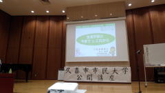 ◎ 久喜市民大学開校30周年記念事業 12/7(土) 鷲宮行政センターまなびすボッと![]() ![]() ![]() ![]() 何度かこのページで書いてきましたが、「久喜市民大学開校30周年記念事業」が、7日(土)鷲宮行政センター5Fの 「まなびすポッと」で開かれました。私の頃は教室は現「久喜中央コミセン」でしたが、今はここが市大・高大両学生の 学びの舎となっています。出席者は市大校友会会長のH氏から、「50名余の参加を頂いた」とメールが来ていましたので それに現役学生を入れて80名弱というところでしょう。開会、まず学長の梅田市長挨拶 ―左― 次いで市民大学では 恒例となっている久喜市の歌・「笑顔のまち 永遠なれ」を斉唱、議長、お二人の県議から祝辞を頂きました。―左2― 早速第1部、文教大学名誉教授、「野島正也」先生による「繋がる地域、豊かな人生」と題した講演を受けました。―右2― 先生と市民大学との繋がりは大変深いものがあります。埼玉県の活動を通して知り合った、旧久喜市教育長「橋本昭」 先生に請われ、久喜市の生涯学習に関わりました。お二人は市民大学のあり方について、充分な論議を重ね開校に 導かれました。お二人は正に市民大学の生みの親です。その後野島先生はずっ―と、市大・市大大学院の教授として 指導に当たられました。私の大学院ゼミの担当講師でもあります。 先生の講演はきちんと用意されたレヂメに沿って行われます。今回もそうでした。人生100年時代から話は始まり ました。歳をとる=高齢になるを、老化という概念でなく「加齢」という概念で考える、そして個人と社会両者にとって良い 状態=「ウェルビーイング」を目指して活動していこう、と呼びかけます。人生100年時代の中で新しい年齢区、65歳~ 74歳=准高齢者、76歳~89歳=高齢者、90歳~超高齢者という区分を提唱されました。そして高齢者=医療・福祉 の対象、若い世代に支えられて幸せを享受する存在から、地域社会で積極的に役割を持ちうる存在とされました。 これからは平均寿命・健康寿命の延伸から、「貢献寿命」・地域と繋がり、役割を持って生きていく延伸が必要と続 きました。最後にこれからは家族・親戚・親しい友人といった強いつながりから、散歩した時に出会う、地域の趣味や サークルでの出会いでえられる弱いつながりを大切に、その外側に人間関係を広げ、そのつながりの中で元気に、 仕合わせに生きていこうで結ばれました。演題の「繋がる地域、豊かな人生、そのものの明確なお話でした。最後に 市民大学在校生から花束を贈呈、1部を終えました。 ―右― さてⅡ部です。講演―パネルディスカッションは良いのですが、私はパネルデ゛ィスカッションをパネラー4人から5人 時間最低1・5時間は、とお願いしてきました。しかし日程の関係でパネラー3人、時間1時間となりました。これでは パネラー同士のやり取り、会場からパネラーへの質問等思うべきもありません。コーディネーターに私は慣れていますが 時間との戦いに終始しました。パネラーは6期生・ゆうゆうプラザに関った柿沼氏、20期生・最後の市民まつり実行 委員長橋田氏、そして前久喜市P連会長・現役の奥貫さんの3名でした。あとコミュニティに関わる人、栗橋や菖蒲で街 づくりに関わっている人、等加えたかったのですが残念でした。最初に自己紹介と市民大学との関係、2度目が自己の 活動の紹介、3度目がそうした活動の中で得た市民大学への思いという、導入―展開―まとめの3回だけで発言は 終わってしまいました。まぁちょっと消化不良というきらいがありますが仕方ないことでしょう。 最後に教育長=副学長の講評を頂き閉会となりまし。年が明けると31期生の募集という現実が待っています。 何の理屈を説こうと、新入生不足という厳しい現実があるのです。そうした現実に引き戻されてチヨット憂鬱になり つつ会場を跡にしました。 |