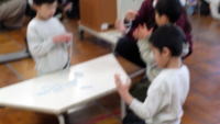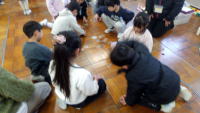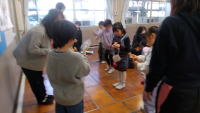 ◎ 久喜小1年生・昔の遊びを楽しむ 1/29(水) 久喜小体育館![]() ![]() ![]() ![]() ![]() ![]() ![]() ![]() ![]() ![]() ![]() ![]() 29日久喜小1年生の多くの地域の方の応援を頂いて、「昔の遊び集会」が開かれました。 ―上・左― 体育館に集まった1年生。久しぶりに100人を越えています。これ位いると迫力ありますね。 ―上・左2― こんなにも大勢の地域の人のお手伝いを頂きました。いつもながら久喜小の子ども達は幸せです。 ―上・右2― 広い体育館フロアーを一杯に使って8つの昔の遊びに挑戦です。 ―上・右― 「あやとり」です ―中・左― 「だるまおとし」です。 ―中・左2― 「めんこ」です。さすがに返せる人(表・裏を逆にする)はいませんでした。 ―中・右2― 「けん玉」です。 ―中・右― 「こま」です。よくまわるこま、皆が上手に回していました。 ―下・左― 「おて玉」です。これだけは遊んでいるところを写せませんでした。 ―下・左2― 「おはじき」です。 ―下・右2― 「ゴムとび」です。 ―下・右― 閉会。代表があそびの感想を述べてくれました。 遊んだものは上記8つです。体育館のフロワーを一杯に使いました。各コーナーで地域の方がそれぞれ指導してくれます。 自分はいくつ出来るだろうと思いました。指導とまでいかなくとも子ども達と遊ぶくらいなら、あやとりとお手玉を除いて後は 大丈夫かなという感じでした。大分前に「竹馬のり」の指導を頼まれたことがあります。「ヤバイ」と思いましたが、身体が覚えて いるのですね。何とかなった思い出があります。顔見知りの他の指導者『孫が1年生にいてね。今日はお世話になっている お礼奉公だよ。』といわれた方が複数おられました。ほほえましいですね。トイレ休憩をはさんで前後半、皆が6つくらいは 挑戦できたと思います。写真を撮りに行くと1年生です。皆が寄ってくるので顔が写ってしまい困りました。「お手玉」だけは 遊んでいるところを写せませんでした。 子ども達は眼を輝かせ、笑顔いっぱいで挑戦していました。良い思い出と経験になったと思います。家でもおうちの方と 挑戦してくださいね。地域の皆様、いつものことながら本当にありがとうございます。こうした一つ一つの体験が子どもたちの 大きな成長につながります。これからもよろしくお願いします。 |
