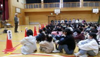 | ◎ 遷善館学園学校運営協議会合同研修会 2/13(水) 久喜北小体育館 久喜中・久喜小・本町小・北小で構成される、「遷善館学園」の合同研修会が超大型寒波襲来下の 13日、北小体育館で開催されました。4校40名の学校運営協議会委員、ほぼ全員の参加でした。 「遷善館学園」については何度か触れてきました。皆様にご相談し、正副会長と学校長による情報交換 の場の定期的開催は定着を見ました。そして次のステップとしてこの「合同研修会」を組織したのです。 学園長である「木村久喜中校長」と相談し、「防災問題」としました。必要課題としてあったからです。 一般的に「防災」に関する研修会は色々な場で多く行われています。「学校運営協議会」としてどう行う かが問題でした。結果「ハザードマップ」による防災の基礎知識、学校における防災について講義・ 実技を通して一般的知識・理解を深めるを基礎に、子ども達と共に、子ども達を支えるという視点で 研修会を持っていくこととしました。 講師は久喜市役所危機管理課危機管理監・「宮本康治」氏です。宮本氏は32年間、陸上自衛官と 勤務、定年退職後久喜市に請われ現職に就任しました。内閣府や総務省、防災機構等が認定する 各種防災に関する資格をお持ちです。32年間の自衛官時代に災害支援に派遣されています。「東 ティモール」・「ハイチ」・「パキスタン」、もちろん国内では「東日本」・「熊本地震」を始め各地の台風被害先 等々です。また特筆すべきはお住いの和光市においてPTA会長、社会教育委員、そして現「学校運営 協議会委員」を勤めておられることです。いわば私達の仲間です。 ![]() ![]() ![]() ![]() ![]() ![]() ![]() まず久喜市発行「ハザードマップ」―令和5年3月作―を使って宮本氏による講義です。久喜市の場合大雨の 降る場所によって、利根川・荒川・市内中小河川の反乱が予想されます。仮に利根川が決壊した場合、栗橋 地区のほぼ全域が1時間、鷲宮は2~3時間、久喜地区4~6時間、菖蒲地区はほぼ6時間で浸水するそうです。 次に河川反乱の危険性が高まったらいつ非難するかということ、(いわゆる警戒レベル3) 次にどこへ避難する かということ、指定された避難所だけでなく広域避難(地盤の高い地域、近くでは上尾周辺)を含め、親戚・知人 勤務先等への分散非難が必要、当然在宅避難をありうる、その場合の日頃の対策、等々を時にはクイズ等出 しつつ流れるように話されました。 ―上・左― それにしてもハザードマップを、常日頃もう少しよく見ておかねば ならないな、を実感しました。なおご承知のように、私は旧久喜市西口・提燈祭り通りに面した本二に住まいして います。提燈祭り通りは旧市街では1番高いところです。キャサリン台風でも両側30mまで水は来ましたが、 我が家は無事でした。地盤もしっかりしており、何かあったら在宅避難と決めています。アトはもう少し非常用備品 食料等備えておこうと反省しています。 そのあと体験コーナーに移りました。まず段ボールベッド ―上・中の2枚― まず大きなダンバール箱、その中に 同じ高さの小さなダンバール箱をそれぞれに6つずつ詰め込み、その上に畳1畳ほどの段ボールを敷けばあっと いう間に出来上がり、写真のように大勢が座ってもびくともしません。 次が簡易テント ―上・右と下・左― 下に断熱用のシートを敷いて、これもあっという間にできました。大きな 避難所のなかで、プライバシーが守れる場所はどうしても必要ですよね。 ―下・中― は避難用リュックとグッズ、これだけのものが必要です。 ―下・右― は簡易トイレ、もちろん回りは何らかで覆うわけです。避難グッズの中にある凝固剤でウンチを固形化 し、一般廃棄物として処置します。皆が簡易ベッドを作り、簡易テントの中に寝転んだり、貴重な実技と体験を得た 楽しく有意義な時間でした。 そのあと休憩をはさんで各学校ごとに協議の時間を持ちました。私達では学校が持っているディグと引き渡しによる 防災訓練を、久喜小地区コミュニティが行う防災訓練とドギングさせたらとか、子ども達が今日のような実技の体験 を行う必要性とか、その場に私達も一緒に参加すること、とかそんな話がでした。 令和6年度の遷善館学園合同研修会も終えることができました。来年度も研修会は継続的に持っていきたいと 考えています。中身については定例協議の場で皆と話し合っていきたいと思っています。 |