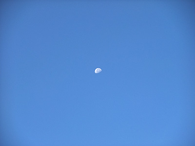 天頂付近には、青空の中に下弦の月が綺麗に見えました。