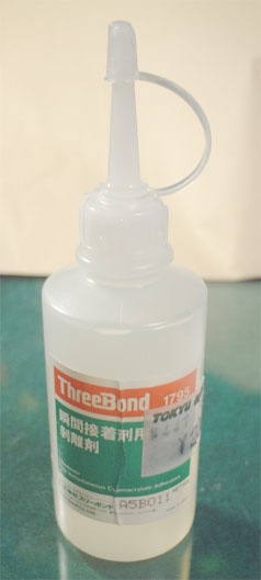 アロンアルファやセメダイン3000ゴールドより良いです。簡易熱結合にはもってこいです。私は、プリアンプなど、熱結合をこれですませてしまう場合が多いです。セメダインはロックタイトとOEM関係にあるようですが、この耐熱タイプはありませんねぇ。東急ハンズ(新宿店)にて購入。これ、液が真っ黒いです。したがって、つけるときは気をつけないと、大変汚らしくなってしまう。そこで、「瞬間接着剤剥離剤」も購入しておくと良いと思います。写真はスリーボンド製1795、今は¥400くらいします。