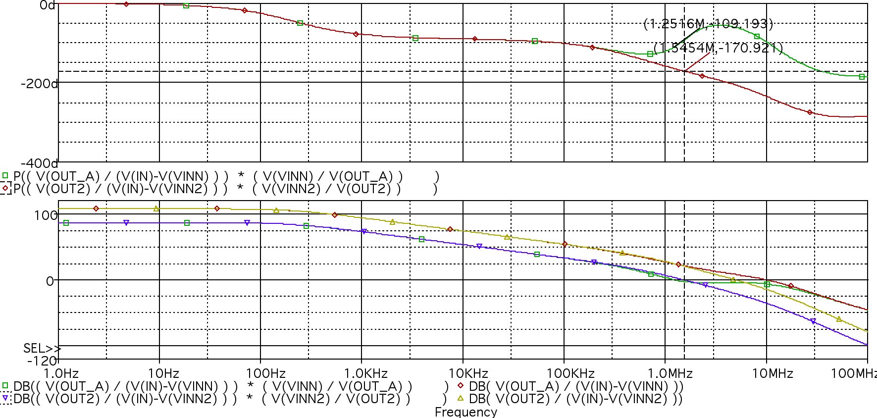 この回路は、R1という若干の抵抗を入れることで、出力のダイナミックレンジが減り、出力インピーダンスも増える欠点がありますが、容易に位相余裕を持たせることが出来るテクニックです。