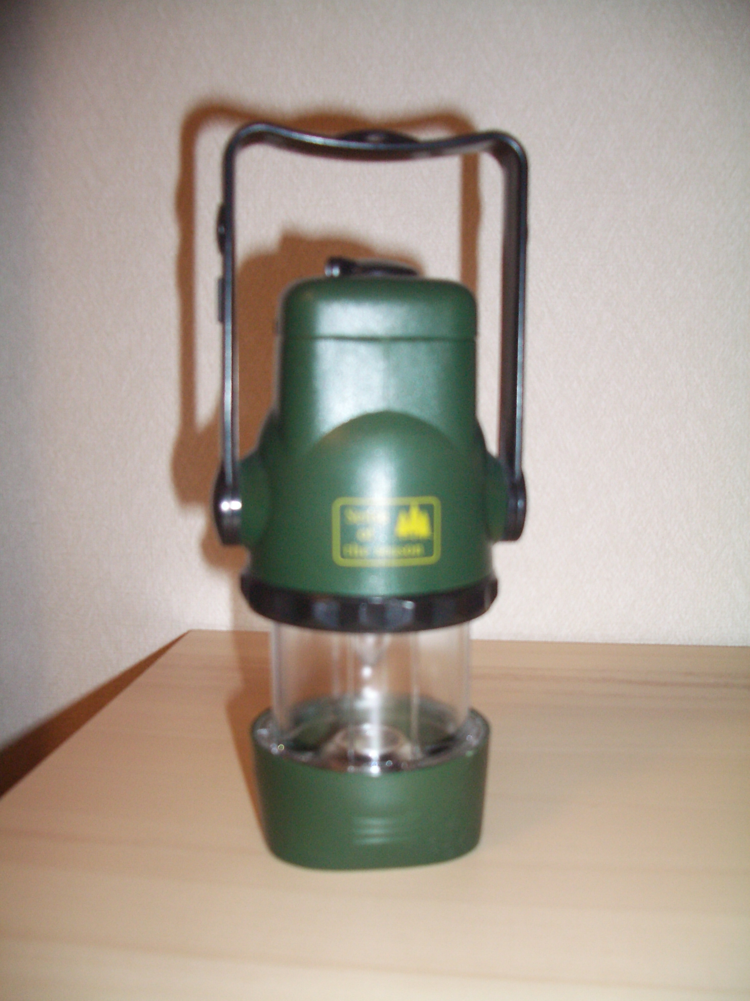 | <2代目ランタン> 電池式ランタン? ランタンというか懐中電灯ですかね。 テント内の証明に使用。 |