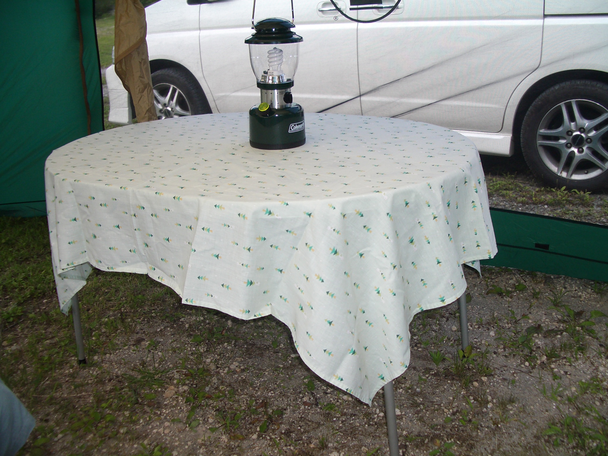 <折りたたみテーブル> コールマン丸型の折りたたみテーブル。 ずーーーっとお世話になっています。 |