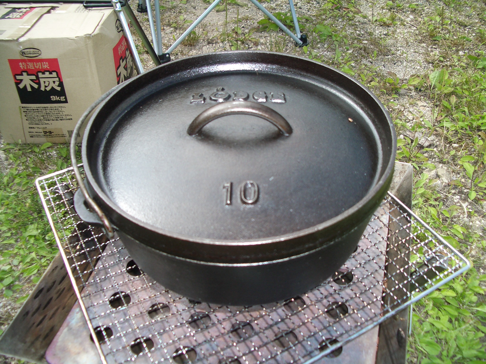 <10インチダッチオーブン> 最初にロッジの10インチを購入。 はじめて使用したときの料理のうまさは 格別でした。 まもなく、もっと大きい12インチの ダッチオーブンも欲しくなり購入。 |