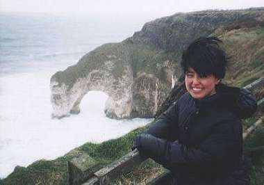 海岸線の国道A2号線を歩いて東へ向かっていたら、 ダンルース城の手前あたりで「穴あき岩」を見つけた。