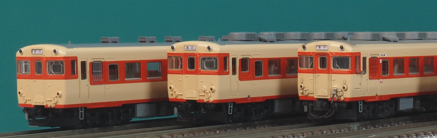 400番台後期型は便所の窓が横長に変更されたものですが、運転台側は中期型から変わってないと思います。 794-799, 1000-1052で59両と意外と多いです。 比較的末期まで生き残っていたせいかトミックスがセットで多用しています。 少なくとも「のりくら」「紀州」「たかやま(6000番台改造後)」には含まれてたかと。