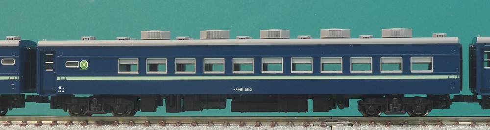 KATOスロ81系を軽加工の上、塗りなおしました。 6両一組のお座敷客車で、全国で7編成がデビューしています。ずらりと並ぶ緑帯がたまりません。 こんなのに乗ってお酒飲みながら旅行したかったですね。 番号は長野局のものをつけていますが、あくまで雰囲気で特定番号ではありません。