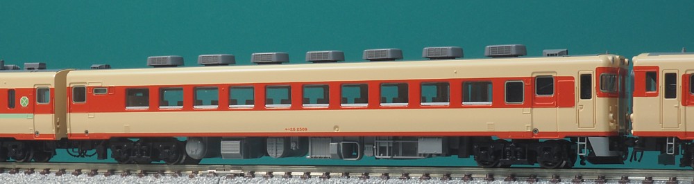 実物が8両しかないのになぜにこの選択…、というのがありましたが、キハ58-1100と時代を合わせたかったのでしょうか。 トミックスがキハ58をリニューアルした末期にはキロ28はだいぶん数を減らしており、 このグループのシェアも高かったのかもしれません。まぁこの時代はというと、 結構な車両がユニットサッシ化改造を受けてるんですけどね…。
