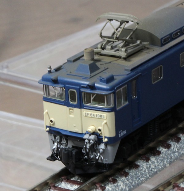 プラパンタは塗装のみにしようかとも思いましたが扱いづらいので、KATOのEF65用(3061-1F)に交換。 ねずみ色1号に塗装もしてます。
