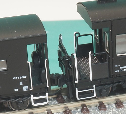 主にローカル線向けだったのでヨ5000と比べると小型となり、 車内の椅子も3人分から2人分に減らされています。 ストーブは当初は石炭ストーブだったのですがのちに多くが石油ストーブに換装されています。 石油ストーブ装備車は車端部に白のラインを入れて識別できるようになってます。 ヨ5000だとトミックスは石油ストーブ装備車、KATOは石炭ストーブになってますが ヨ6000はトミックス、KATOともに石油ストーブ装備車を模型化していますね。