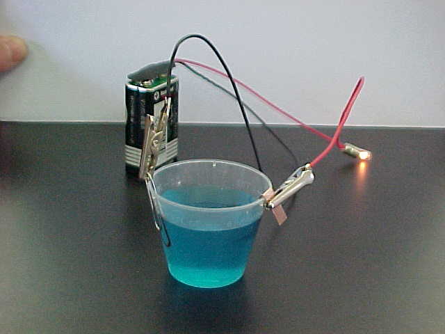 9Vの乾電池にリードード線つき豆電球をつなぎます。