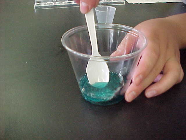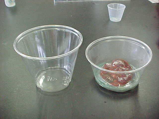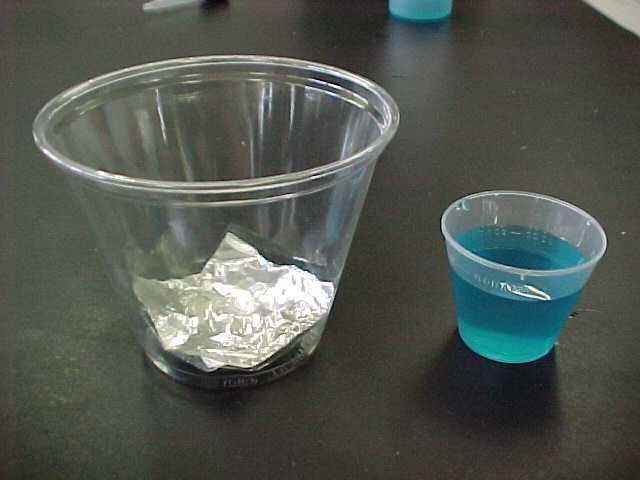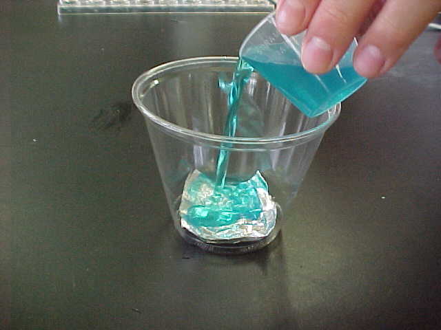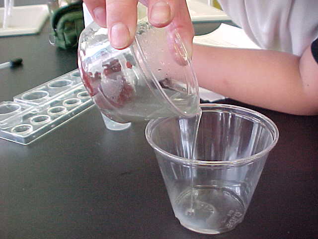 銅のかたまり以外の液体をもう一つのカップにうつします。
