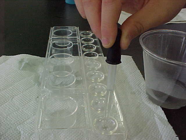 カップの中の液体をスポイトを使ってSEPUPトレイに入れます。