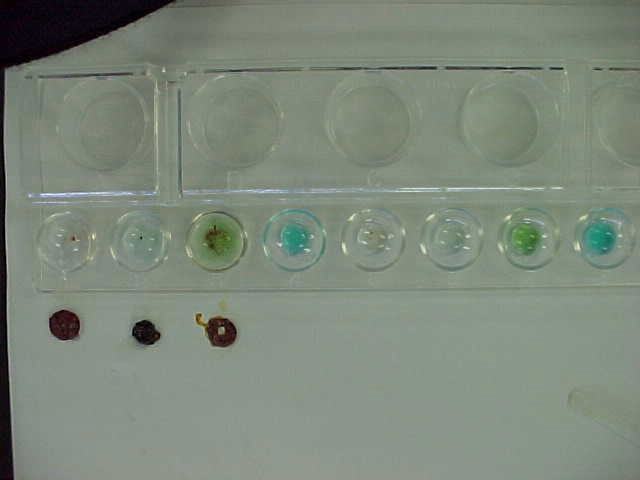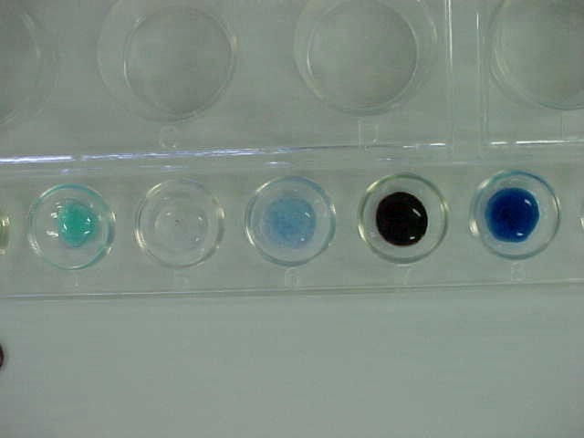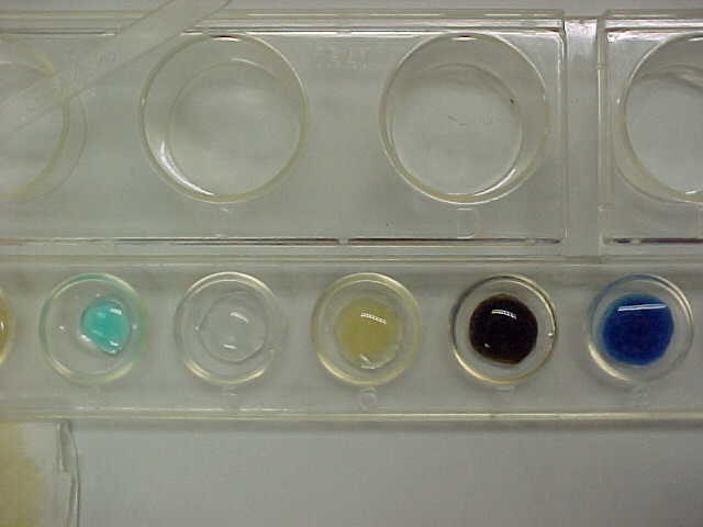 それぞれに、アンモニア溶液を5滴ずつ加えます