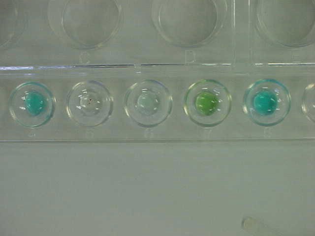 1の液体を5へ、2の液体を6へ、3の液体を7へ