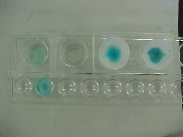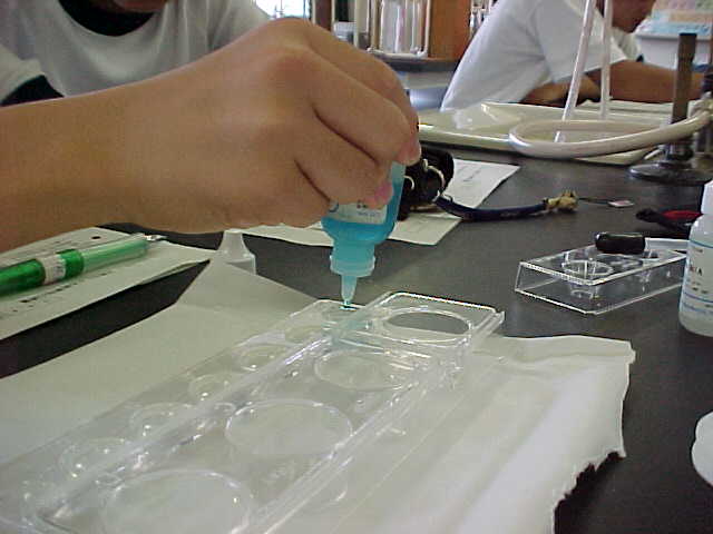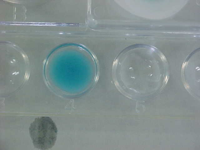 カップAの濾液をカップ4に、カップBの濾液をカップ5に10滴ずつ移します。
