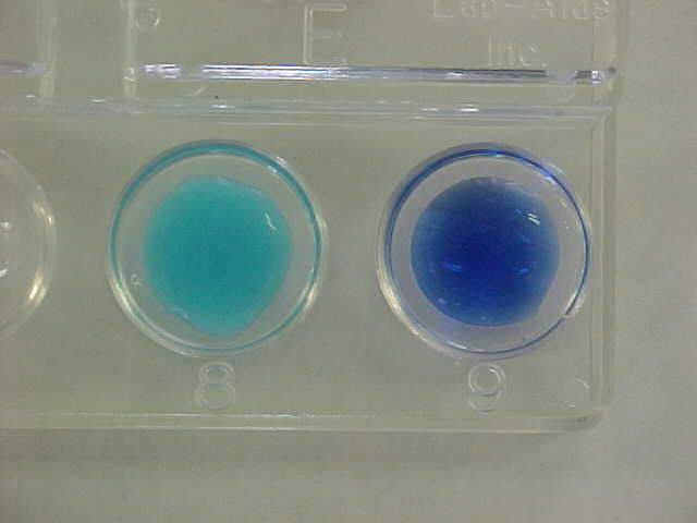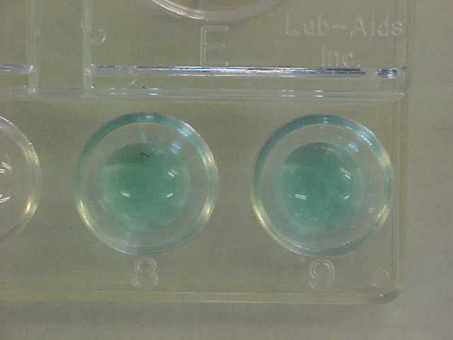 SEPUPトレイのカップ1と2に使用済みの塩化銅水溶液を20滴ずつ入れます。