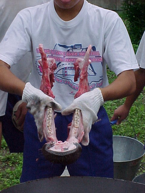 ウシとブタの頭を岩槻市の「肉のこみや」さんより購入。