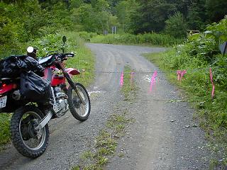 荷物満載の単独林道、「怖いなぁ〜」と思うものの、