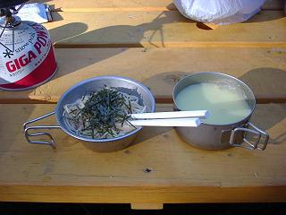 朝食は「タラコのスパゲティ」と「コーンポタージュ」。