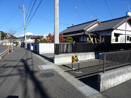 | 旧東海道は,水守中央公園(工事中)に 入り,右(東)に曲がっていた。 今回は,途中の路地(写真にポインタで表示) を公民館方向に北上してみた。 |