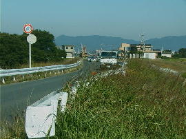 | 下条方向から下条橋を渡り, 西橋詰の信号を右折すると, せまいの堤防上の道が続きます。 豊川市方面への近道で交通量も多いです。 |