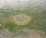 富栄養化が進んだ湖沼において異常繁殖した微細藻類のこと。また、異常繁殖した微細藻類により水が抹茶のような色になること。アオコが発生すると水中の溶存酸素が低下し、水も悪くなるため魚の活性が落ちる。![]() |