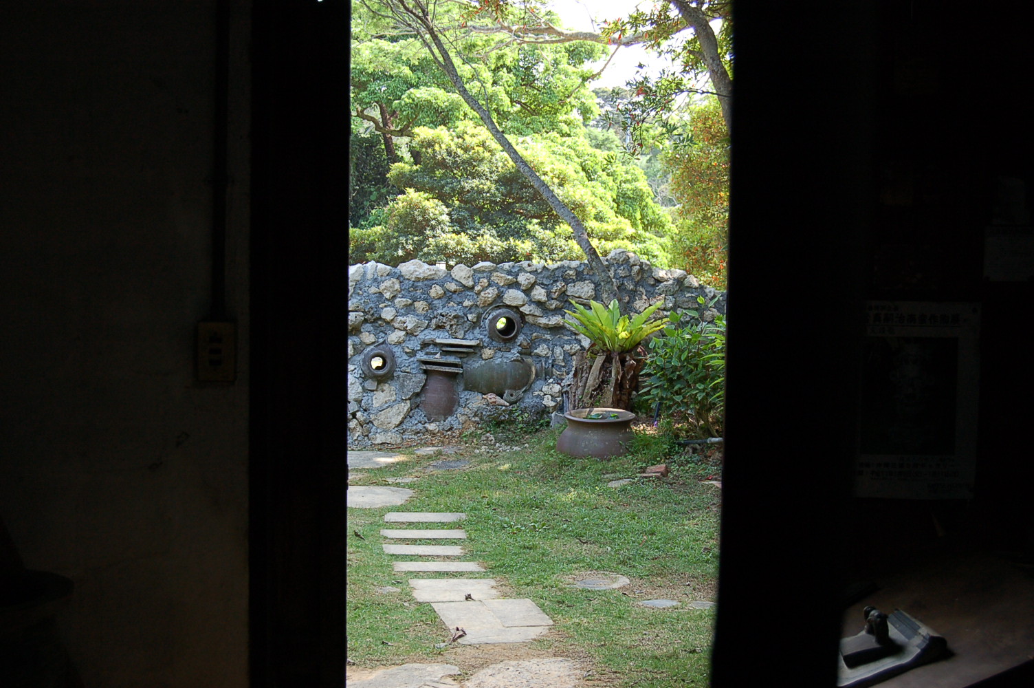 有り合せの物で工夫をして作り出すとそこに創作物ができあがる。野暮ったいが、やちむん屋のヒンプンと言ったところ。