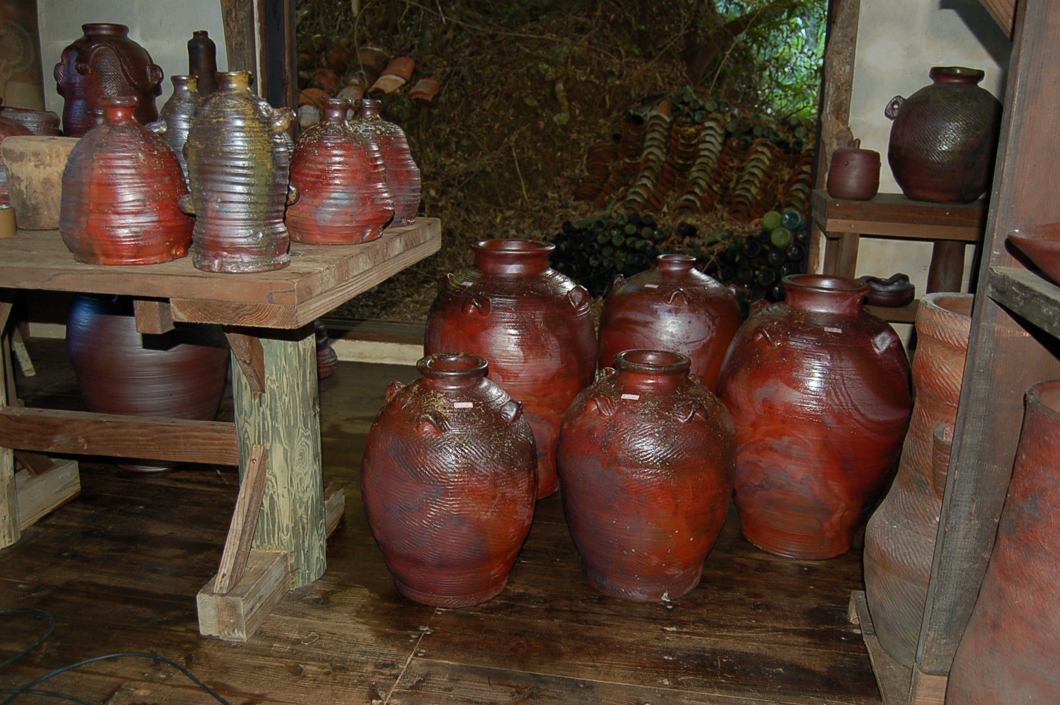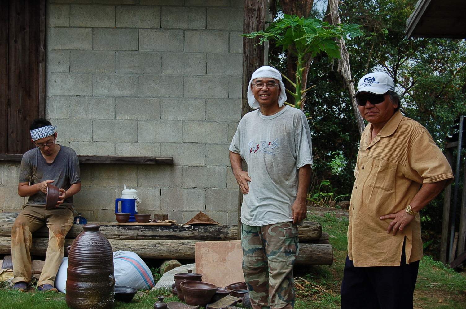 塾生で壺作りにメッキリ腕を上げた、古酒(クース)にはまっているK氏。渡り鳥のホサカ(今年も一ヶ月滞在、陶芸