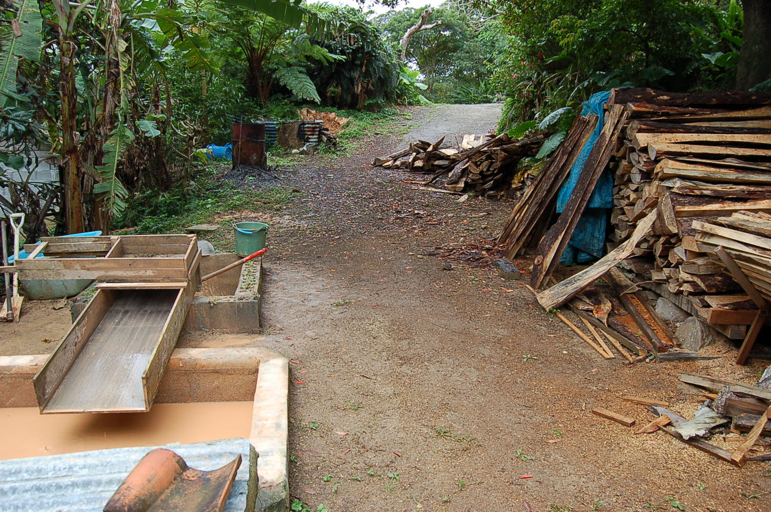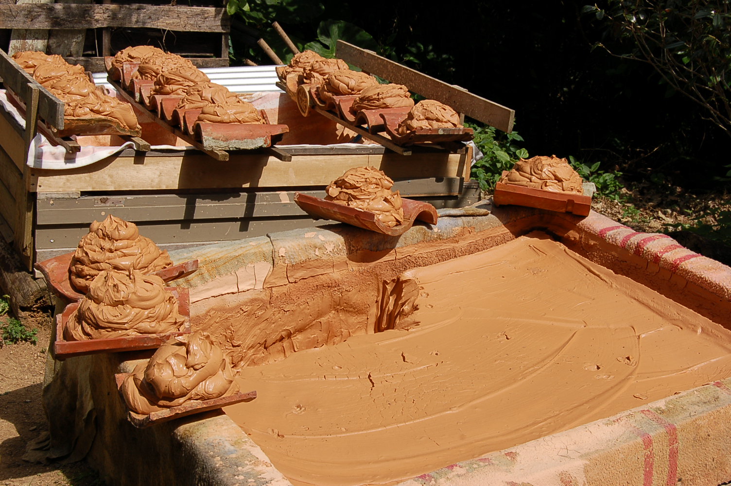 2/20 スイヒを終え沈殿した泥土を干し場に上げた。2ヶ月で一トン半の陶土を作る。空になった沈殿槽で、2回目のスイヒを始める。