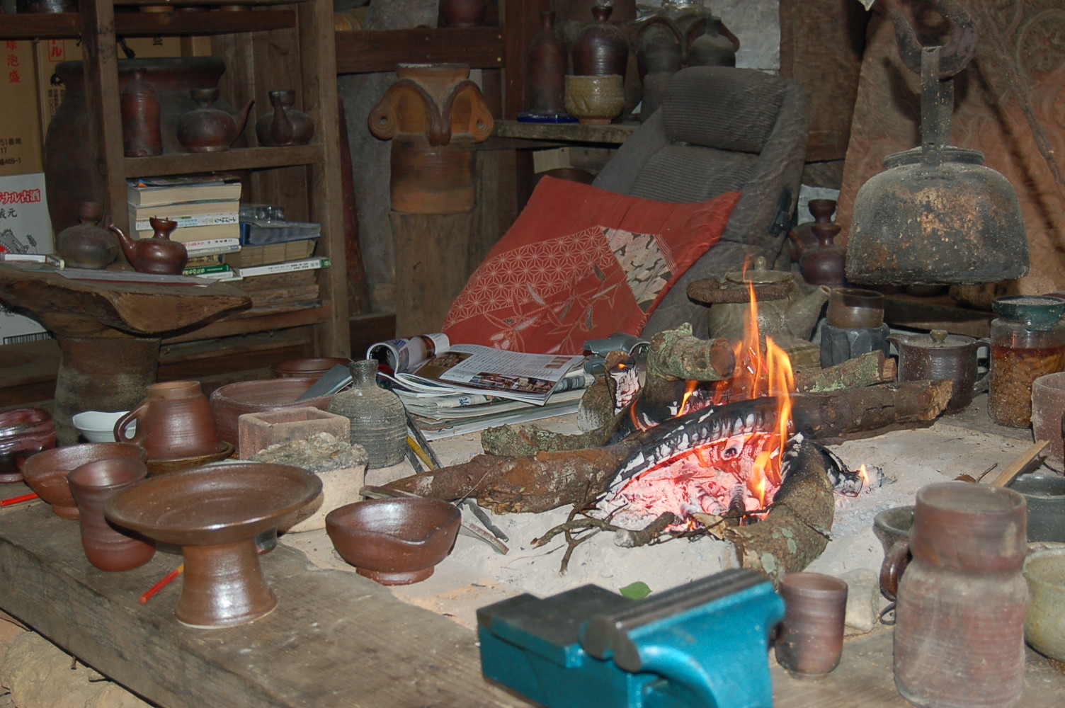 両脇に抱えて、工房に持ち運ぶ。以前は囲炉裏周辺を綺麗にし、スッキリした気持ちで読書をしていたが、今では掃除の時間を