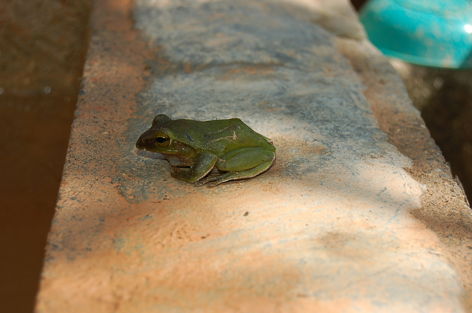 2匹のアマガエルが現れた。3日目に一匹はいなくなったが、他の一匹は20日経っても、常に定位置に現れ逃げない。