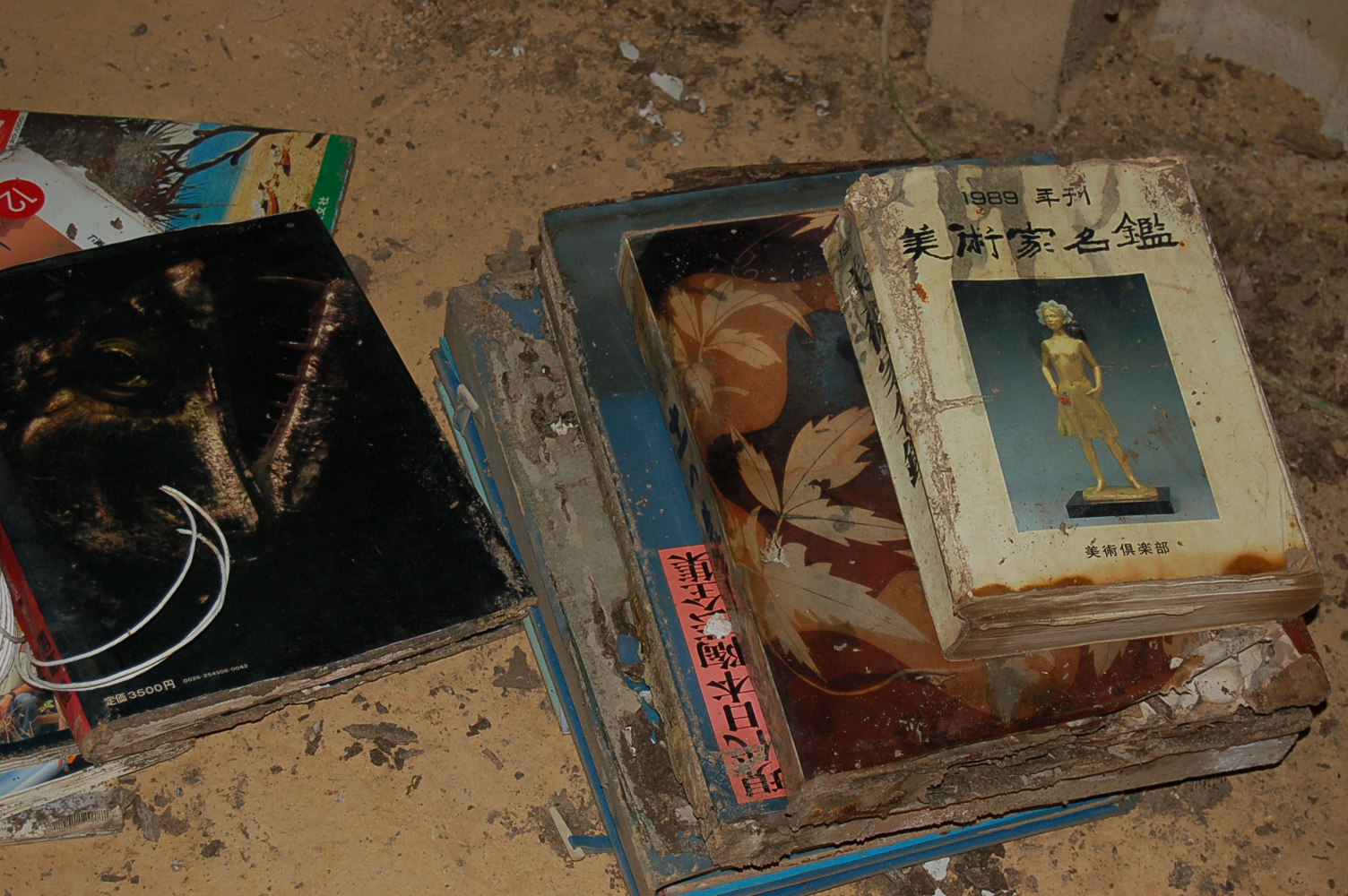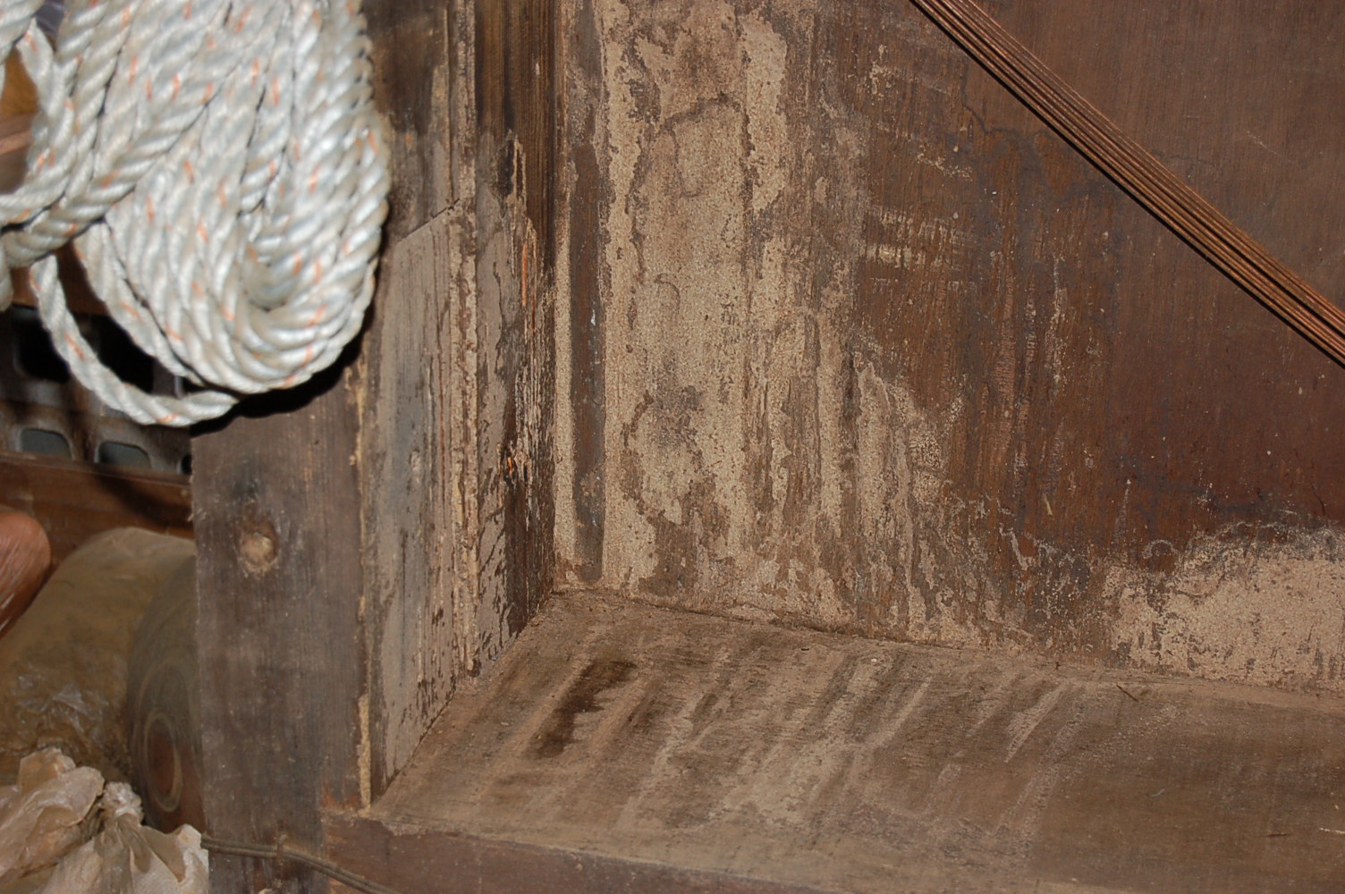 やはり、土間に接触した書棚は不適切。湿度が上るや土間から土の細い管のトンネルを作り、たやすく目的地に辿り着く。