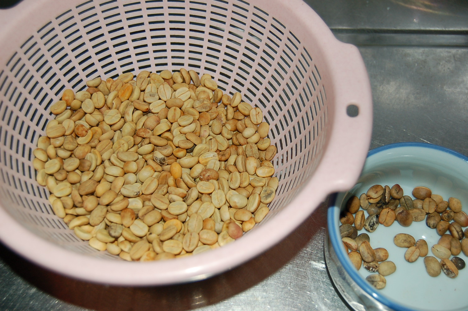 自家焙煎したコーヒーを飲む。格段に美味しい?。右は通信販売で購入した焙煎機にサンプルとして付いてきた