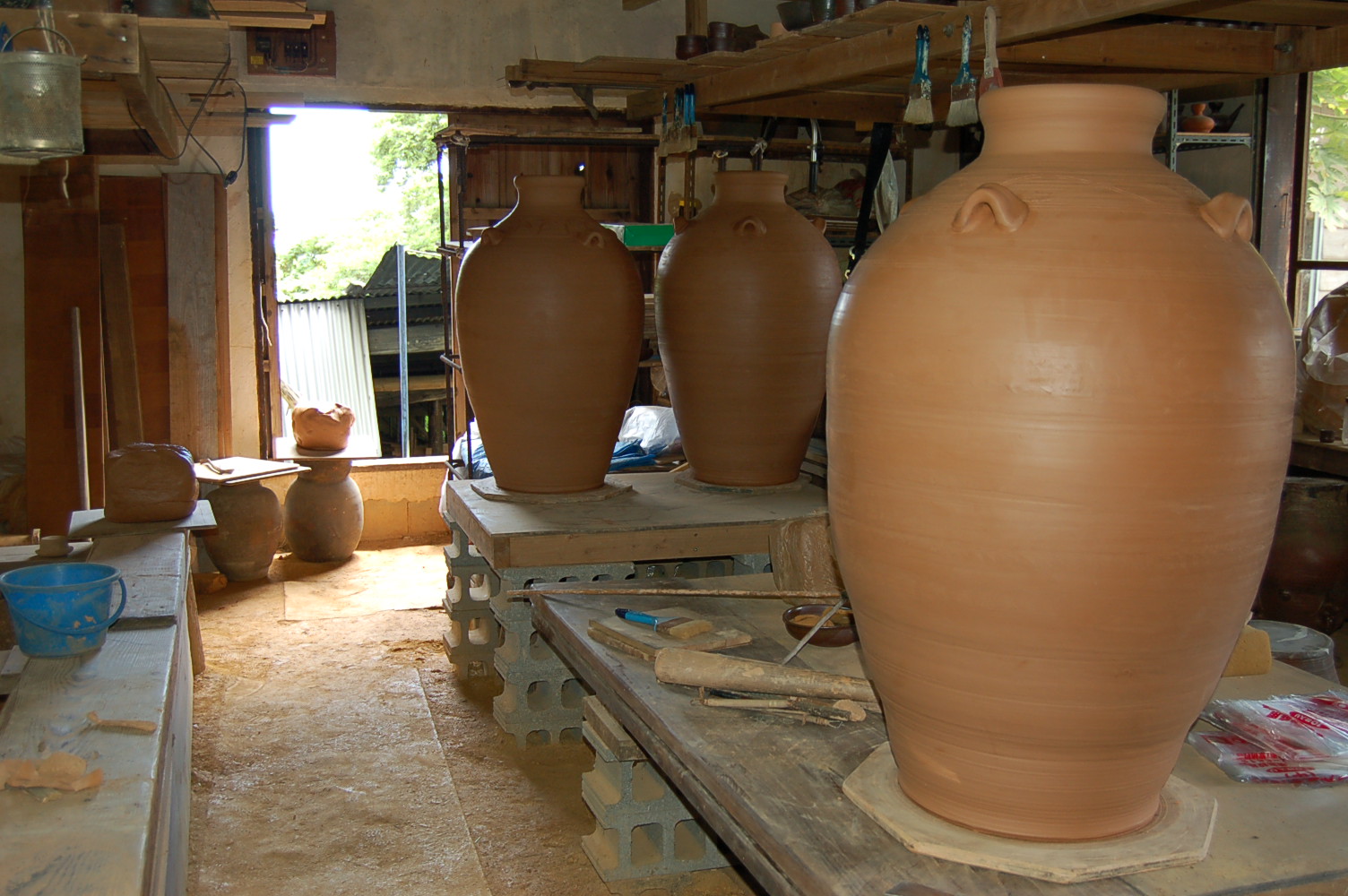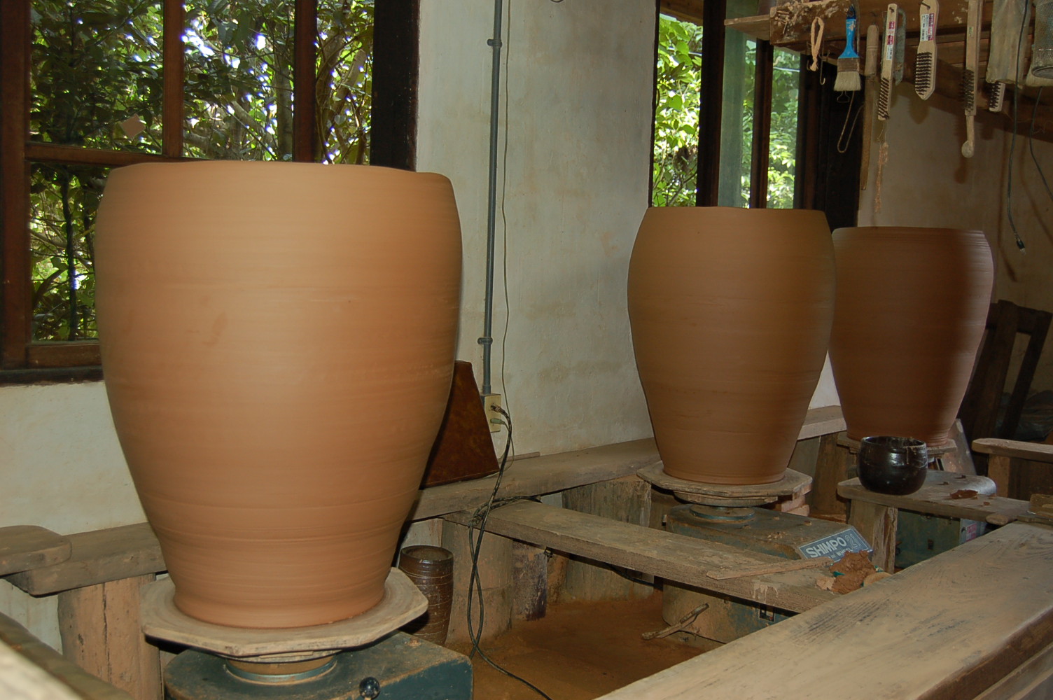 ロクロ3台をフル稼働、古酒甕を作る。五斗〜8斗甕4本と一斗半〜2斗甕10本。
